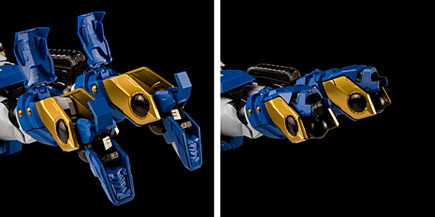 ▼ 超重皇大幅還原了動畫中的變形結構,雙臂手收納至肩甲,並展開藏於上半身內的合體用肩部接點。