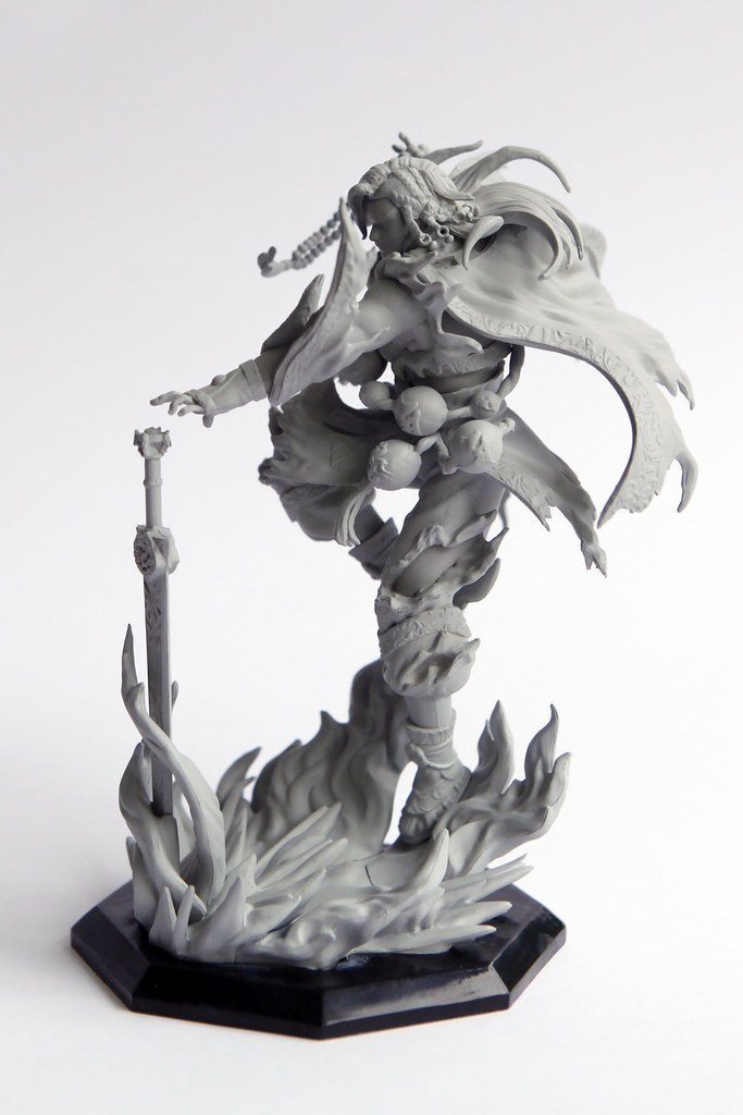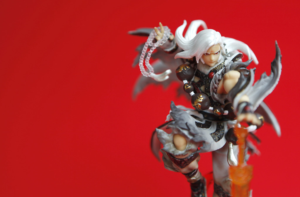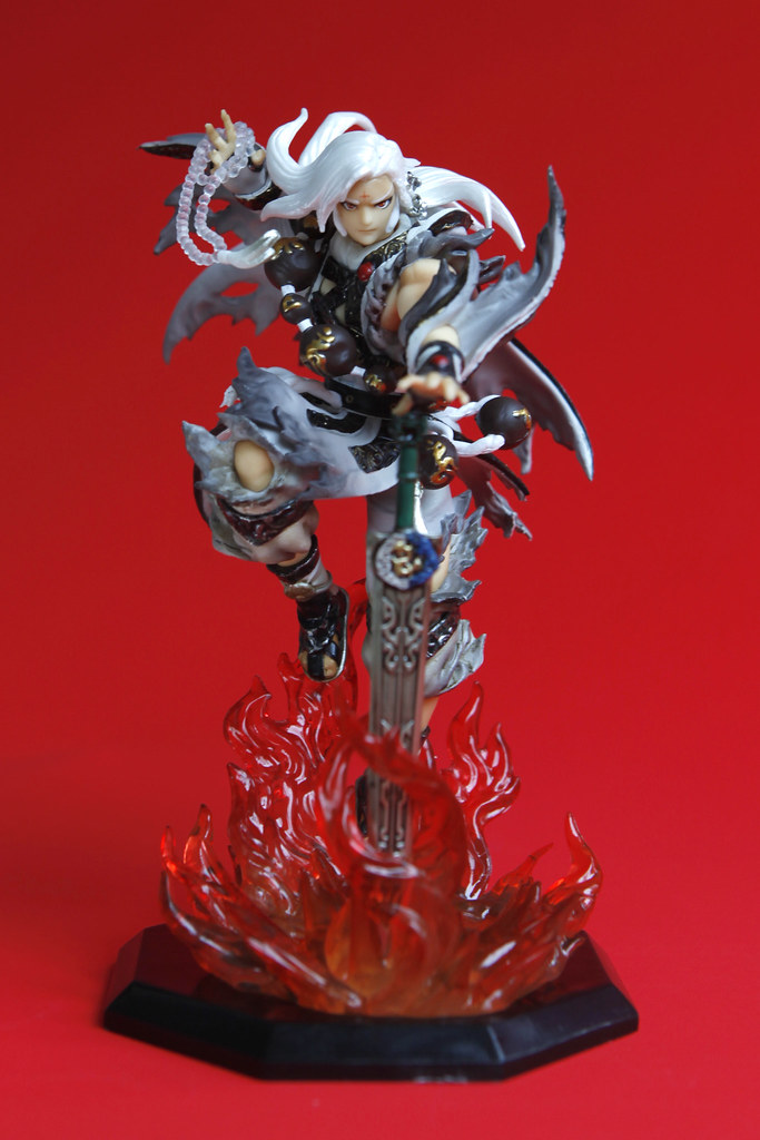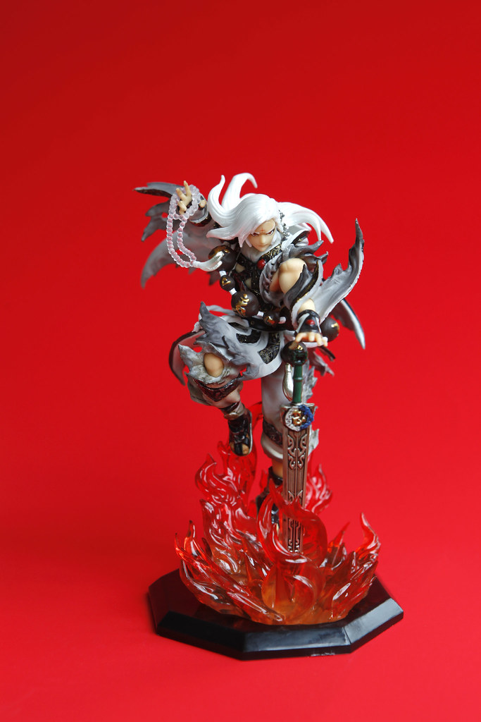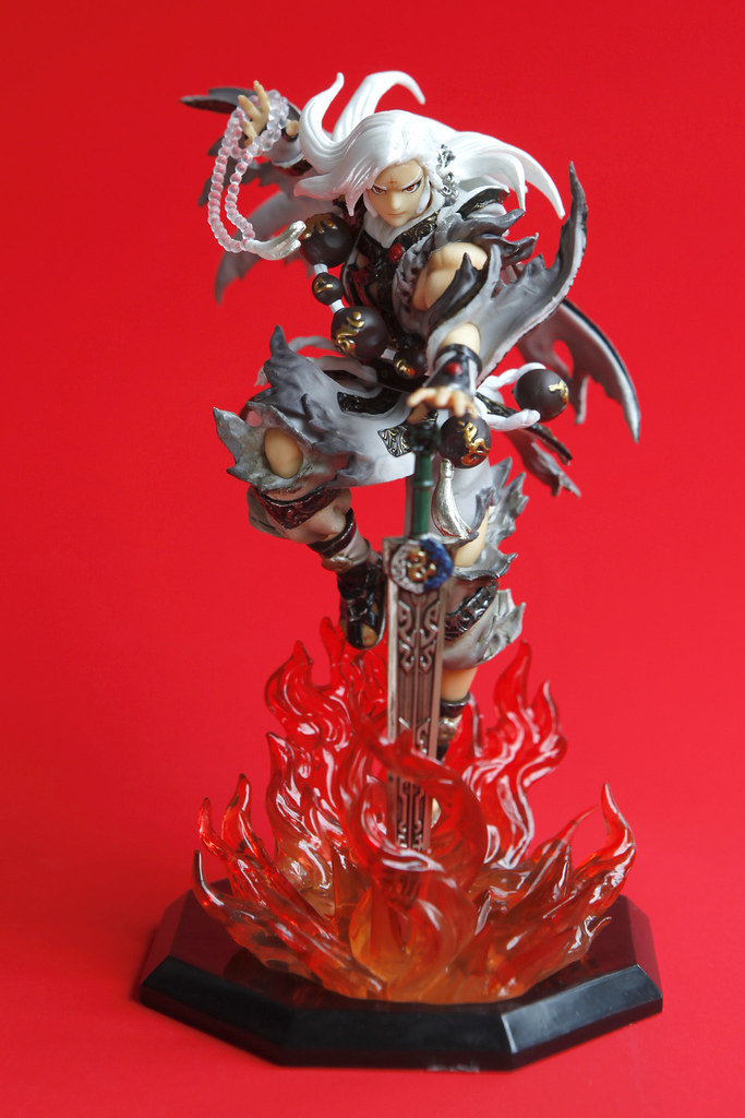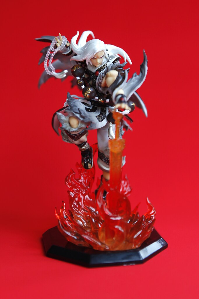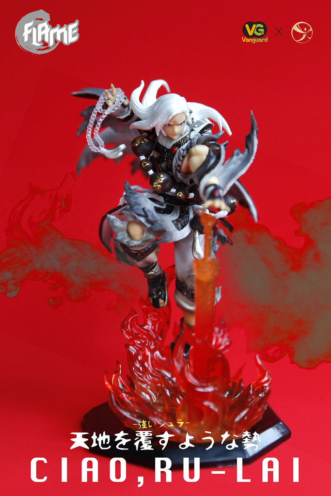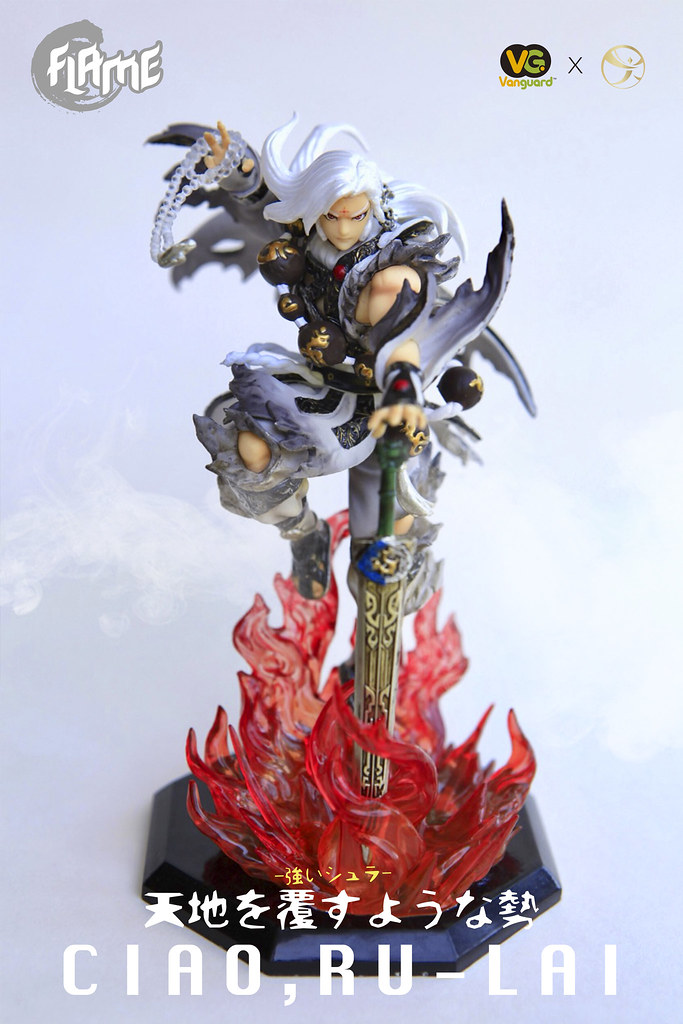 本作高約16 公分,以高水準的製作技術將俏如來的霸氣樣貌立體模型化,最大的亮點就是如來、修羅的雙頭雕設計啦~全身的服裝、配件也都考究地再現,搶眼的巨大佛珠、充滿爆裂美感的衣服、飛揚的長髮,都讓整體的躍動感更加強烈,除了本體之外,還有「墨狂劍」搭配,可以重現「止戈流 開陣」的帥氣姿態,加上以聖炎為主題製作的地台,使收藏價值再提升!