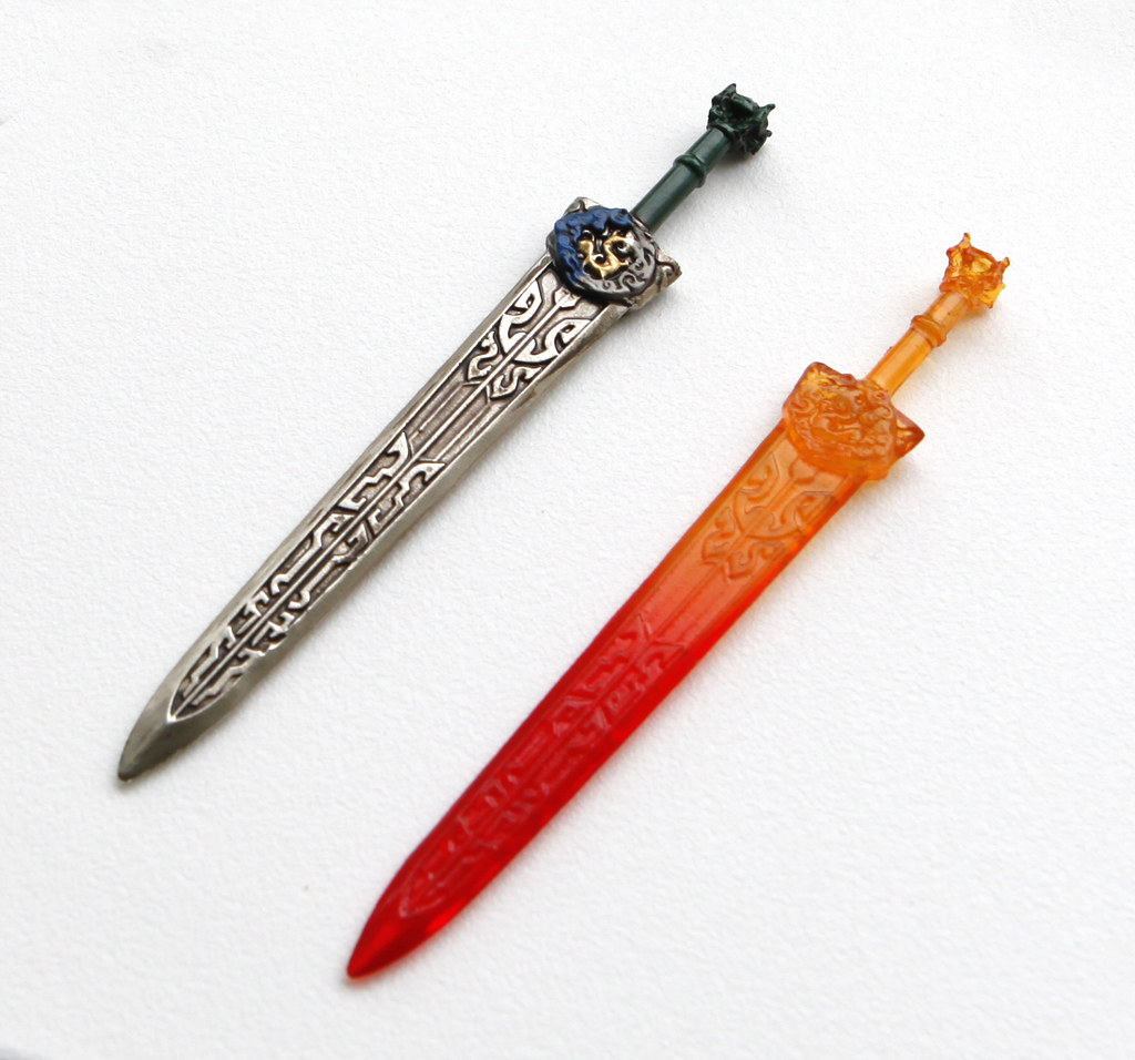 在彩色的版本中,還有「預購版」與「現貨版」,預購版則是會多追加一把透明的墨狂劍;除此之外,還有風格截然不同的「灰模板」,除了本體之外,灰模板與彩色版最大的差異就在於底板的樣式,不但包含了煉之系列的帥氣LOGO,還印上了金光布袋戲大家長「黃大俠」先生的簽名歐~