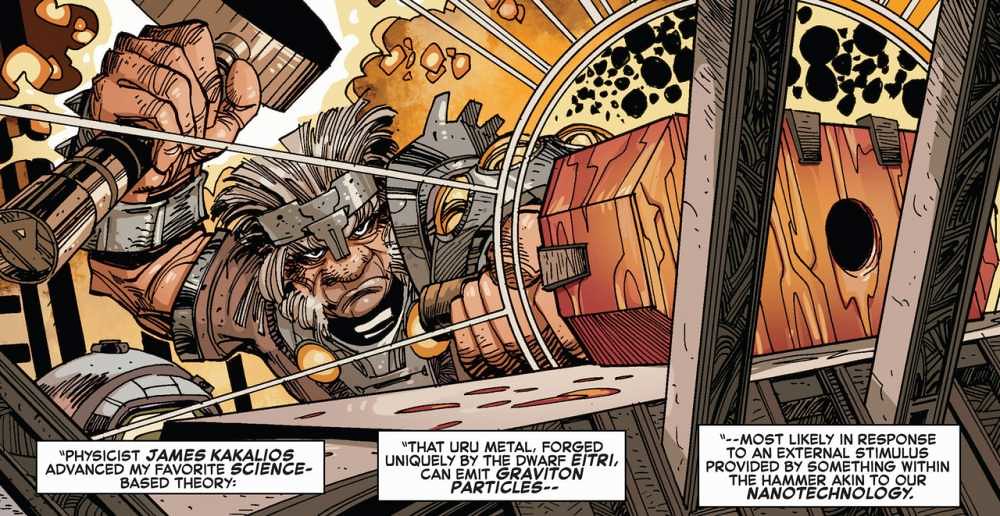 復仇者聯盟3當索爾為了對抗薩諾斯的威脅,決定去Nidavellir(尼德威阿爾),也就是矮人的國度去拿新武器。在那裡,我們看到知名演員彼得·汀克萊傑飾演的矮人之王Eitri為唯一的矮人倖存者,知道無限手套是由他打造出來的,更證明漫威電影宇宙的確是把超自然元素用異國情調的外星科技做詮釋,而非跟漫畫一樣是奇幻更科幻混合在一起的宇宙。