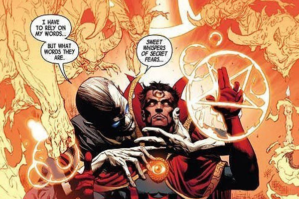奇異博士被烏木喉拷問的場景,是致敬於漫畫《無限》大事件中,烏木喉入侵史傳奇心智,藉此得知無限寶石所在地的畫面,更催眠使他成為間諜。
