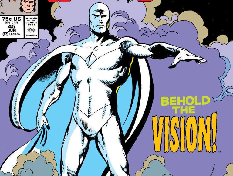當幻視被薩諾斯毀掉時,失去了色彩是參考漫畫西海岸復仇者聯盟的時期其造型,當時幻視進行重建卻失去了人性,於是變成無色的樣子。