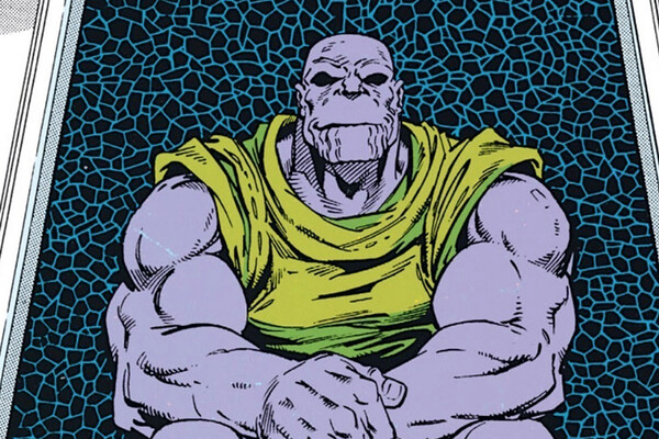 在漫畫《無限手套》事件中,薩諾斯被擊敗後在一個星球隱居,並過著祥和的生活。電影則改成他消滅宇宙一半的生命,認為自己目的已經達成,才開始認為宇宙和平已到,才會有這樣的放鬆情境。