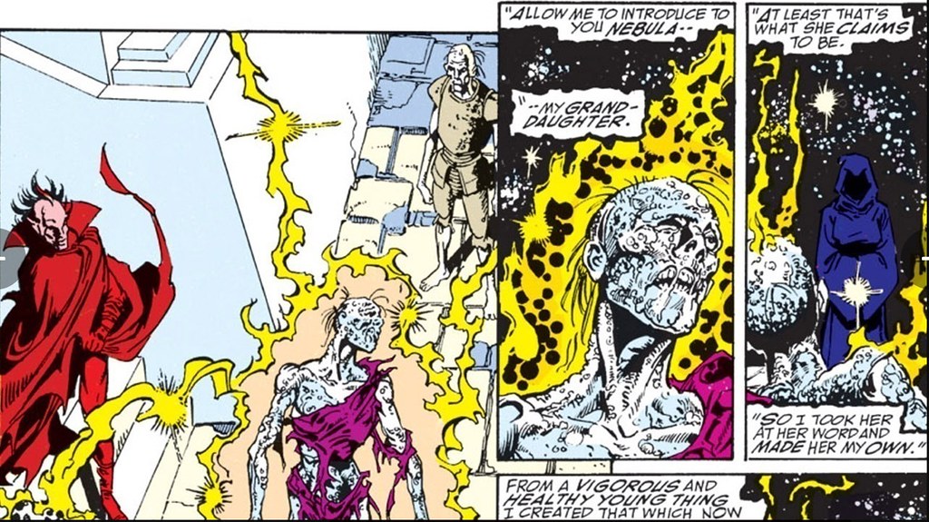 薩諾斯折磨另一個女兒涅布拉,就是希望葛摩菈能講出靈魂寶石的所在地,當然虐待場景是致敬漫畫《無限手套》事件。