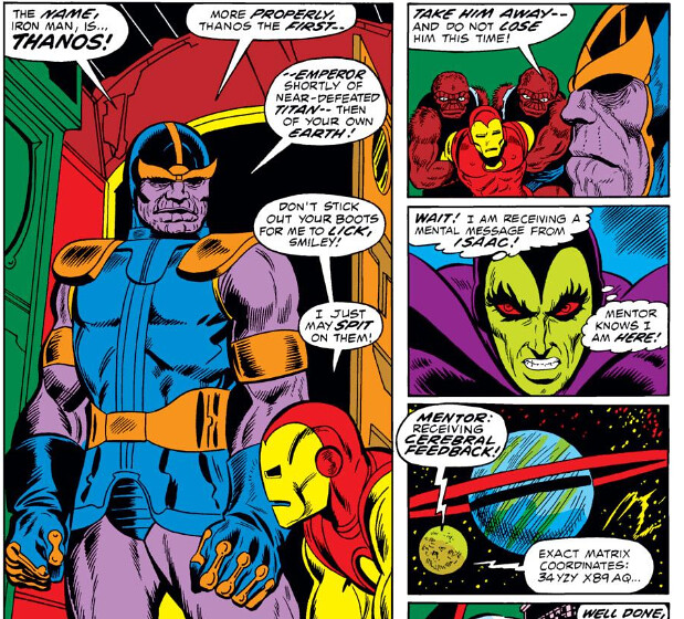 在片中我們可以看到薩諾斯很了解鋼鐵人,兩人甚至有一場單挑死鬥,這是致敬薩諾斯第一次登場是鋼鐵人連載的歷史。
