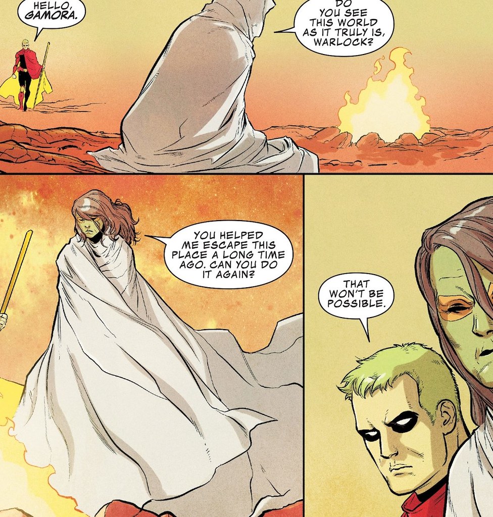 葛摩菈在漫畫中曾被薩諾斯殺死,導致靈魂在靈魂寶石中,而現在的漫畫事件中,有一部分的葛摩菈老化的零魂也在靈魂寶石裡。MCU則是薩諾斯殺死葛摩菈來獲得靈魂寶石,所以我們好像猜到之後電影會怎麼演了(笑)