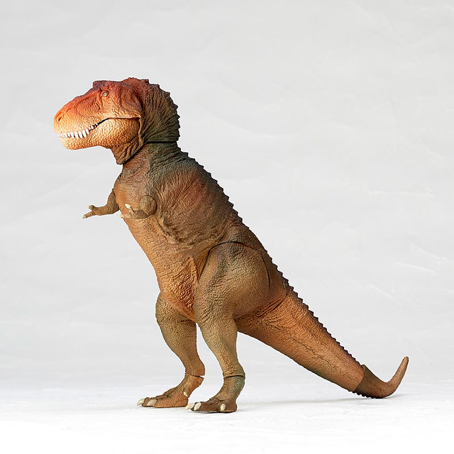 這次「暴龍」全身上下頭部、上顎、左右腕、左右脚、左右足首、尾付根與尾部等等,總共有約10個可以轉動的關節,連張開嘴巴內的舌頭以及尖齒的細節都仔細呈現出來,SOFUBI TOY BOX的動物系列造型總指揮是由「松村しのぶ」老師來執行,此次暴龍作品的原型由十分擅長恐龍造型的「SHINZEN」老師來擔任的,喜愛《SOFUBI TOY BOX》系列的玩具人千萬別錯過了啊!