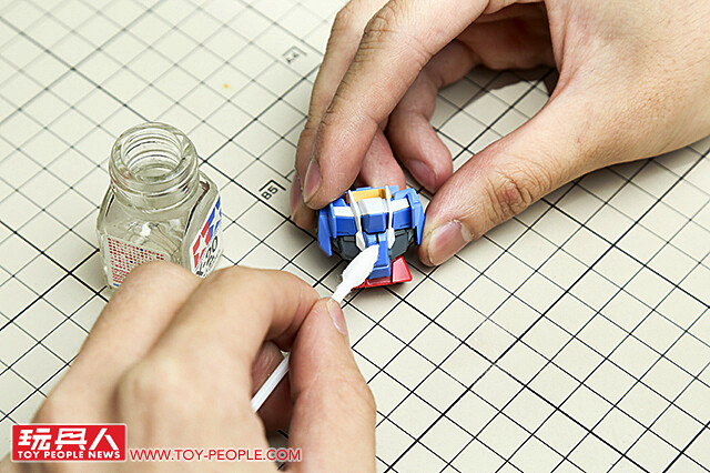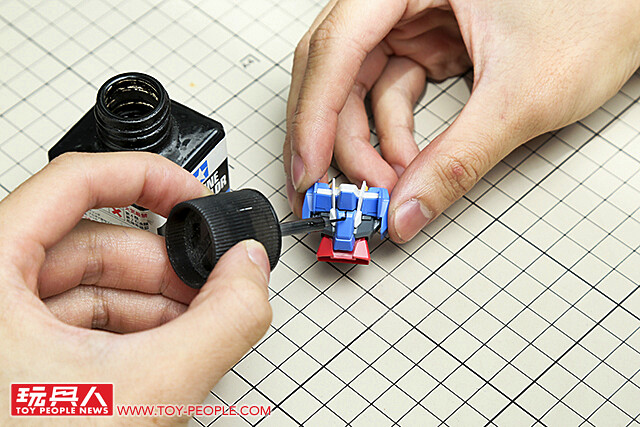 ▼ 將各處的細節小心地點入墨線液顏料。千萬要避免顏料過多,在點墨時流到零件內部喔!