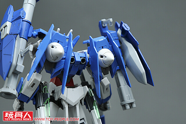 ▼ 將GN動力爐移到背後,並且增加了「鋼彈模型製作家零件HD」與「武器&關節連接零件」,整台機體看起來火力更強大了!