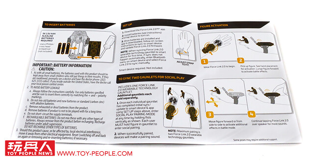 ▼ 在遊玩前請先詳閱說明書,這樣才能體驗完整的玩法喔!附帶一提,原力連結2.0的手環能夠往前支援舊版的原力連結人偶,但相反過來,舊版的1.0手環是無法啟動新版人偶和載具的音效的,這點還請各位玩具人多加留意。