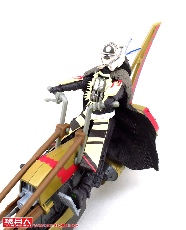 ▼ 再來讓我們看看本次的三款載具!就先從外傳登場的角色-雲騎士團(Cloud-Riders Gang)首領「恩菲斯·內斯特」(Enfys Nest)與他的「飛梭摩托」(Swoop Bike)開始吧!