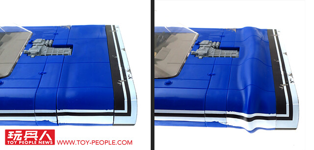 ▼ 除了各部位的小細節,這台飛船當然還設有神奇的小機關!在車頭受到撞擊後,會表現出類似超跑的潰縮式設計,以軟膠的材質表現出車頭的變形及毀損。