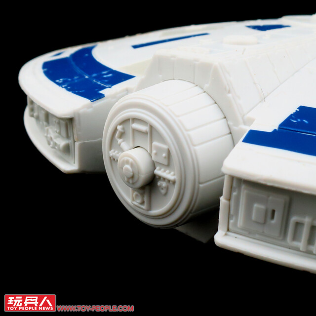 ▼ 最後壓軸的載具,當然就是星戰迷最熟悉不過的千年鷹號啦!本次採用的造型,是依其原主「藍道·卡利森」(Lando Calrissian)的喜好改裝而成,白藍相間作為基調的配色確實讓人耳目一新。