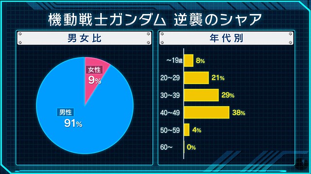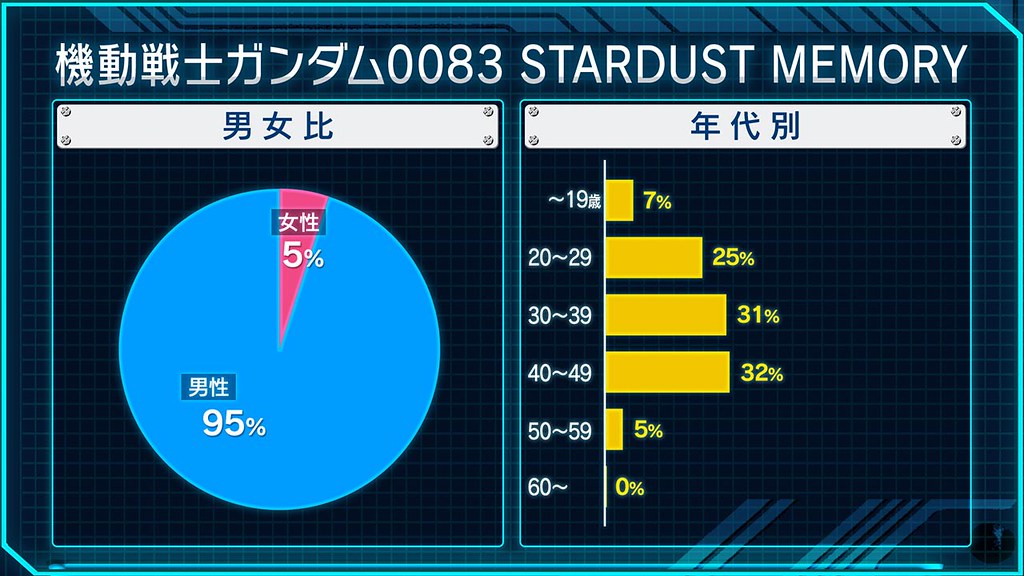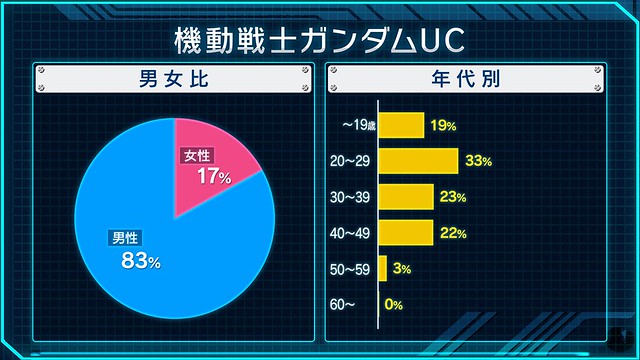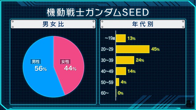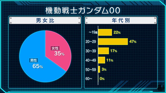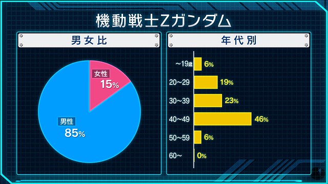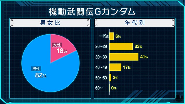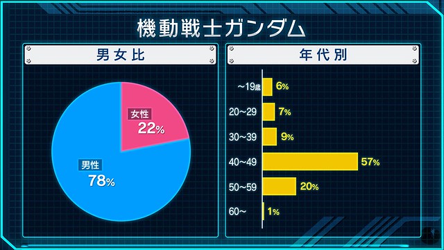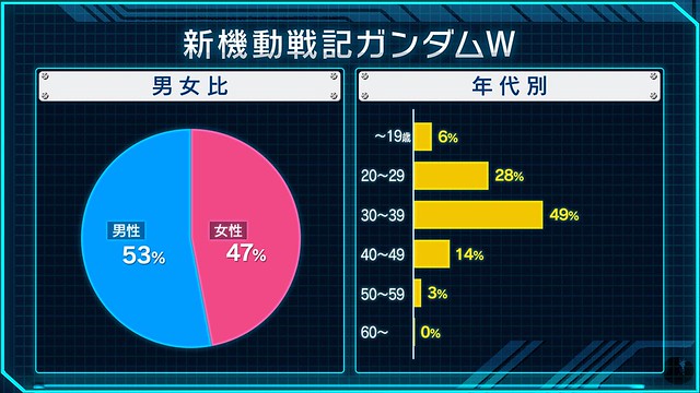 ▼ 此次投票的性別、年齡層比例,主要集中於「20~29」「30~39」「40~49」三個世代的鋼彈迷。