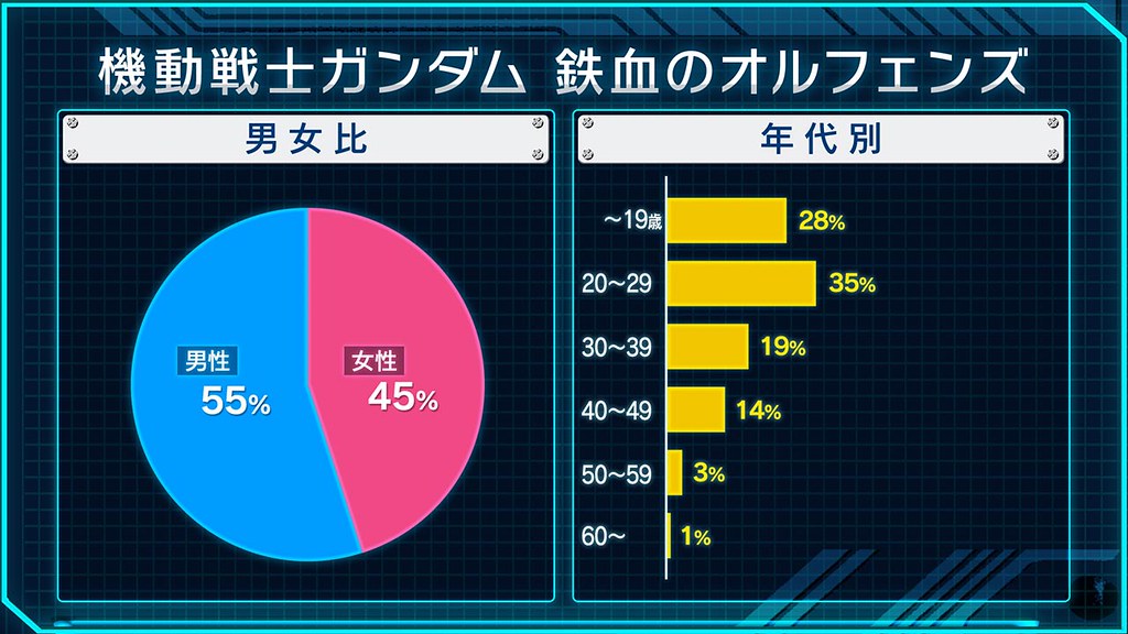 ▼ 不同於以往的鋼彈作品,《鐵血孤兒》並不像是提倡「反戰」,反而是讓主角方「為了生存而參與戰爭」,雖然劇情在接近尾聲時引發不少爭議,但整體架構、機體設計依然是相當新穎,男性角色的數量、情同兄弟般的互動也是受女性粉絲歡迎的原因之一。