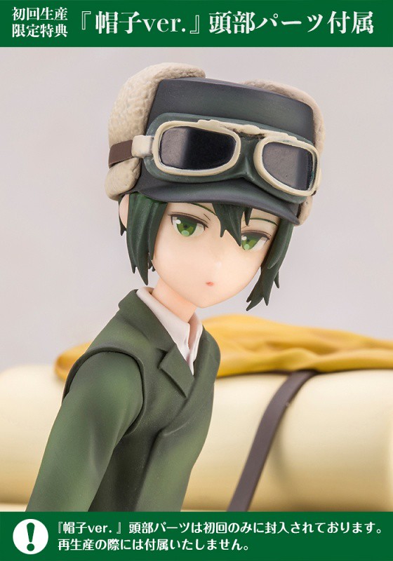 「ARTFX J 奇諾 1/10比例模型」細膩打造出奇諾倚靠在漢密斯上的場景,底座則以原作中令人印象深刻、遍地綻放的「紅花」為設計。奇諾本體製作出了她無感情、平靜的五官造型,軍綠色的服裝透過漸層塗裝加深了立體感,服裝皺摺、槍套中的「說服者」等細節也相當精緻。首批生產的商品中更附有讓奇諾戴上帽子的「頭部零件 帽子ver.」限定特典,而 KOTOBUKIYA SHOP 限定版則能再獲得微笑表情的頭部零件!