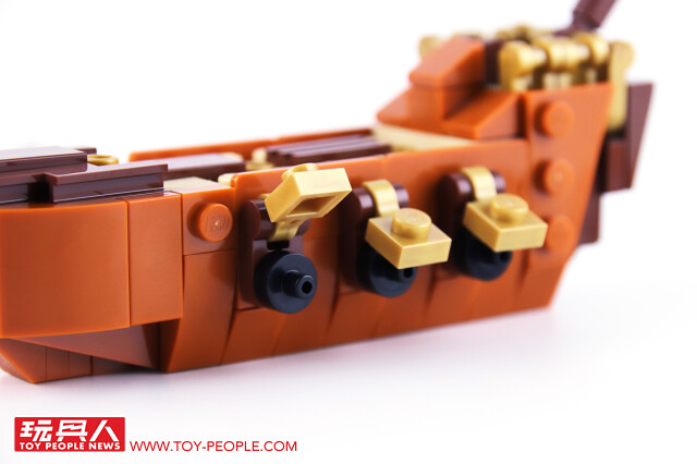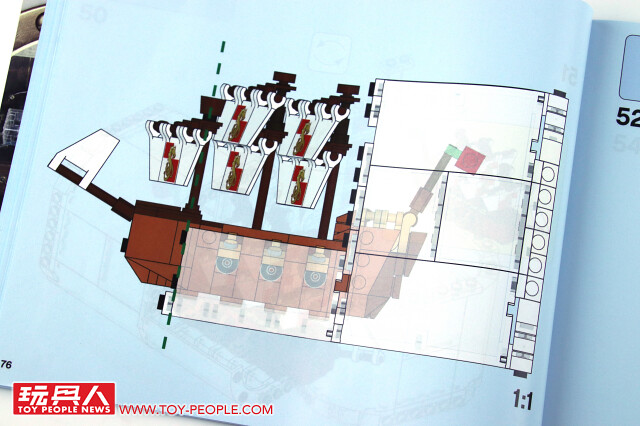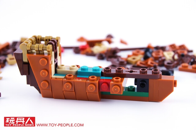 ▼即使是組裝完後看不到的船體內部,樂高也會盡量使用不同顏色的磚來拼搭,讓玩家可以更方便組裝,不用一直去細細比對。