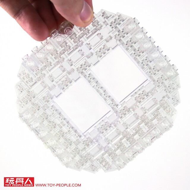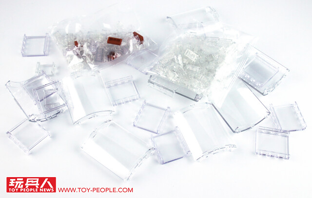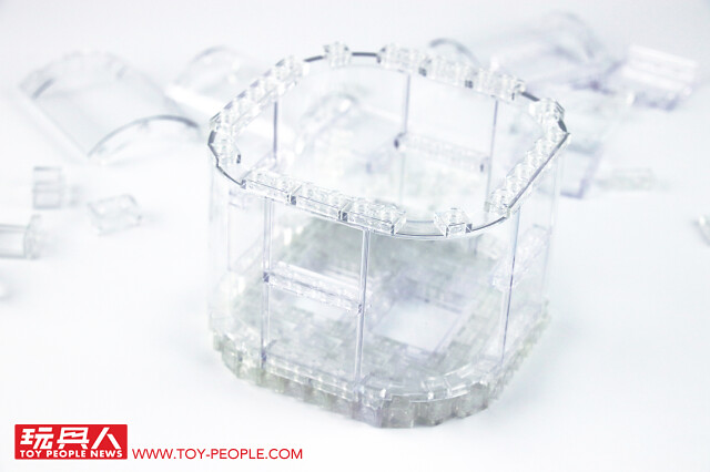 ▼底部扣除掉中間兩塊窗戶零件,其他都是由許多小零件,一顆一顆地堆疊而成,最後組出一片漂亮的瓶底,組裝過程算是頗為獨特的體驗。