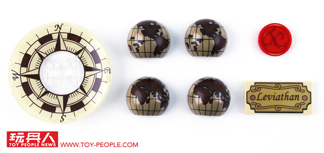 ▼再來就是木架的部分,這裡的特殊件有羅盤、立體航海圖、蠟封,以及印有「Leviathan」的名牌,超讚!