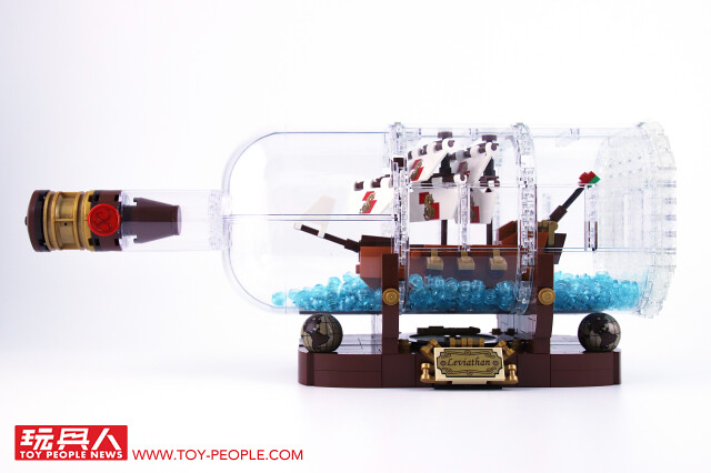 「LEGO 21313 瓶中船」的原作者是「Jacob Sadovich」,投稿的帳號名稱為「JakeSadovich77」,他將這艘船取名為「Leviathan」,名稱是來自傳說中的海怪。跟他原先的設計比起來,正式作品的瓶身較為細窄,雖然船體的設計變得較為簡單,但是瓶身更為流線,在瓶口的部分也用上巧妙的設計,再加上底部的仿木支架,讓整體的質感大提升!變成收藏品的等級啦~