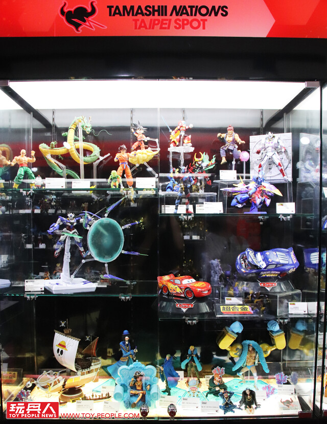 在「TNTS」中間的兩個展示櫃都會定期更換主題,目前正在展示的有「超進化魂系列商品」和「NXEDGE STYLE 紅蓮騎士獸」,天女獸實在太漂亮啦~