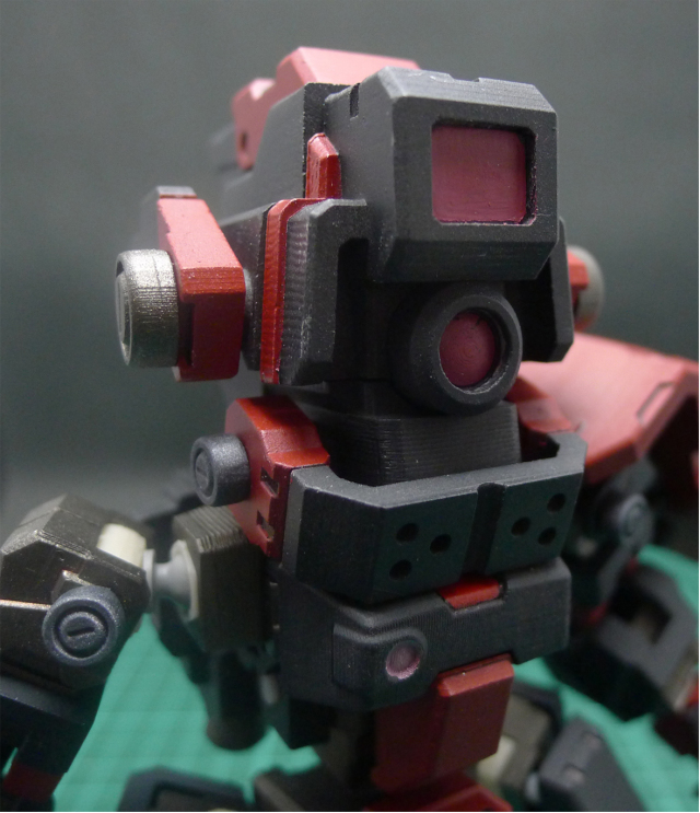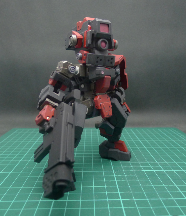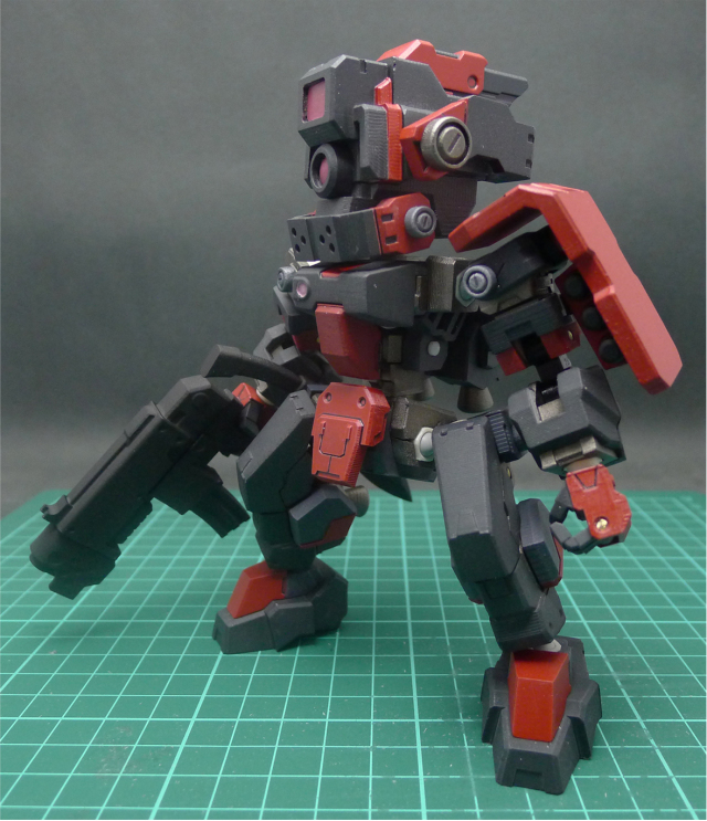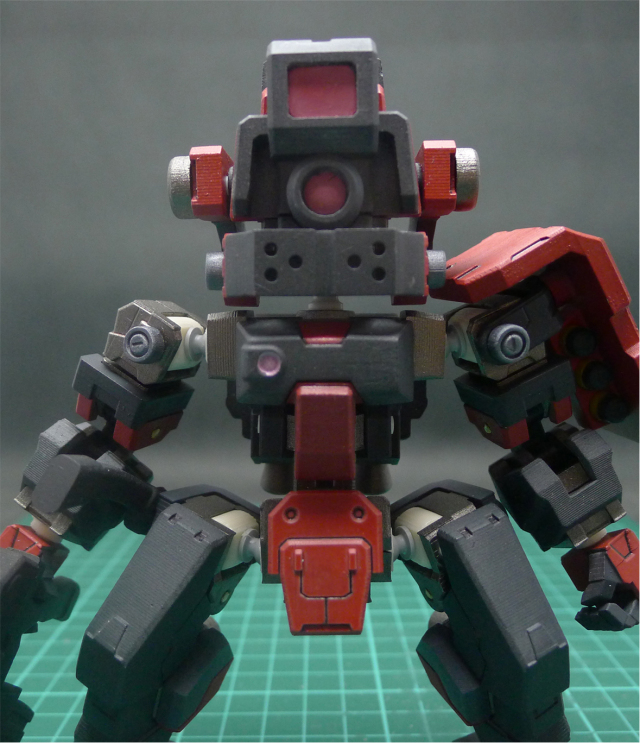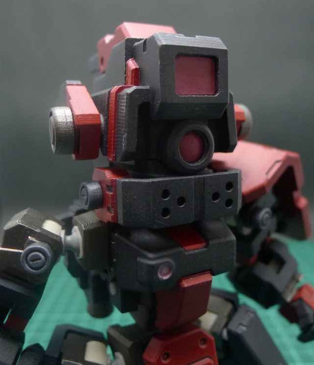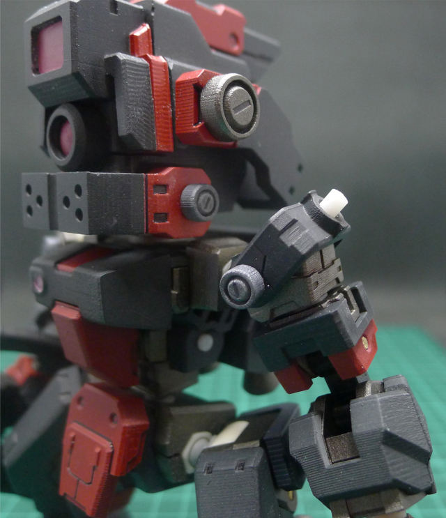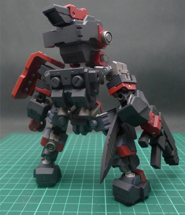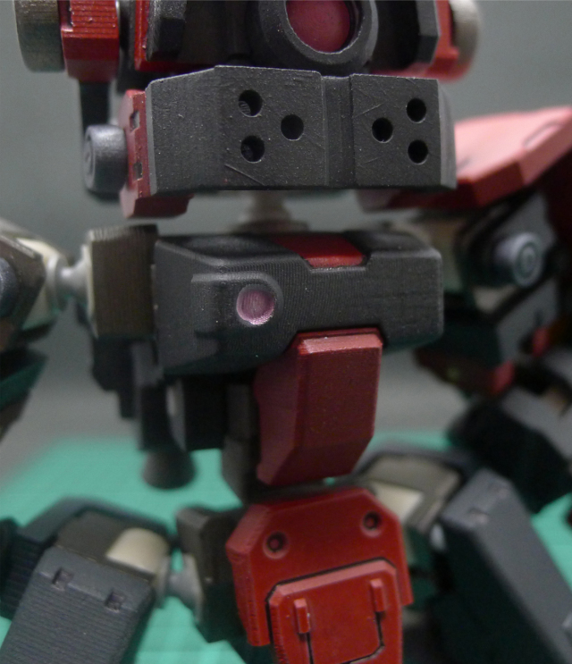 雖然在胸口以及腰部的部分有追加裝甲,但仍有些許的骨架裸露在外;