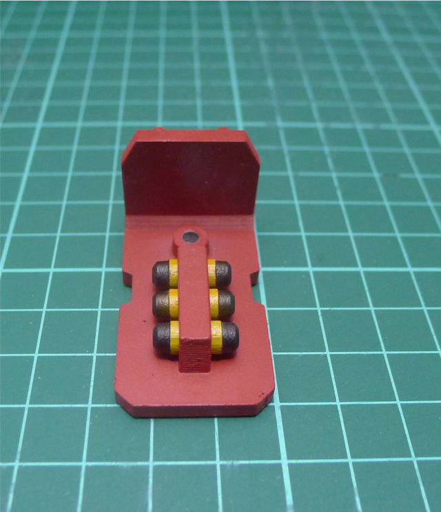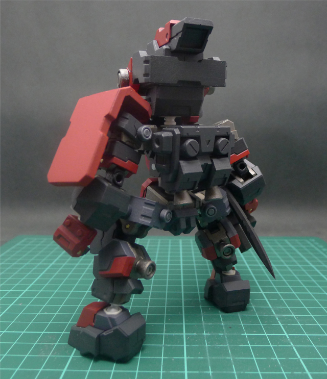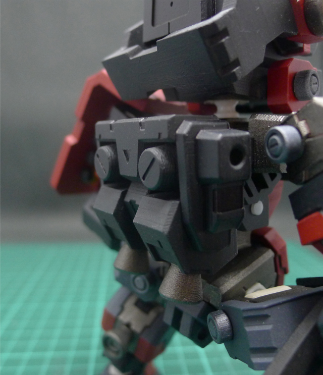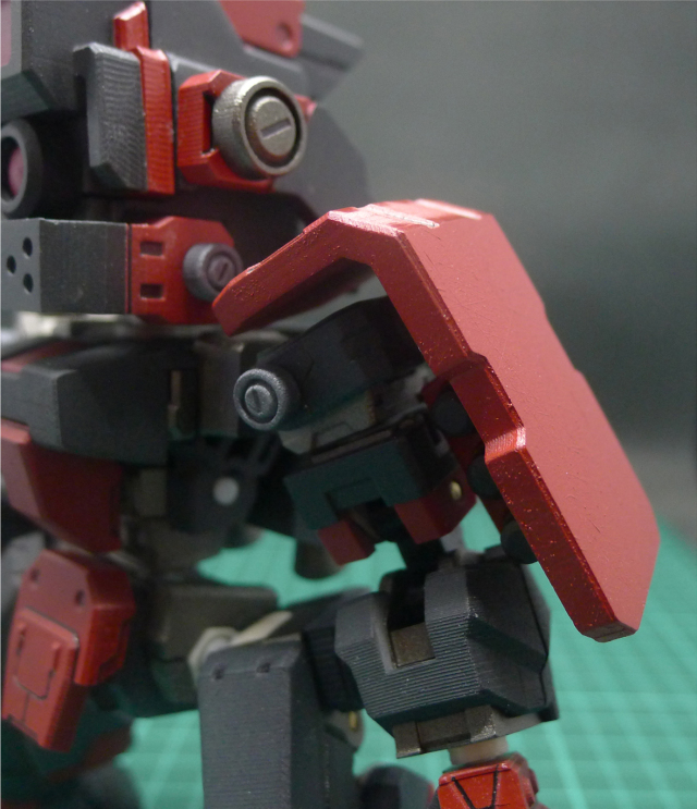 右肩的裝甲除了有作為盾牌使用的功能之外,內側同時也可以收納機槍的補給榴彈;