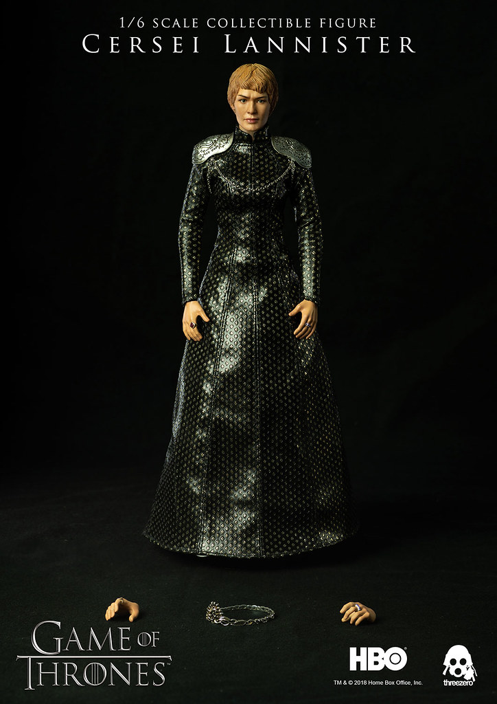 在推出「詹米·蘭尼斯特」、「丹妮莉絲·坦格利安」、「艾莉亞·史塔克」、「異鬼」等角色之後,香港知名人偶大廠threezero 日前再度發表來自美劇《冰與火之歌:權力遊戲》的第七彈新作「瑟曦·蘭尼斯特」(Cersei Lannister)1/6 比例可動人偶,現正於官網開放訂購,預計將於2019年第一季發貨!!