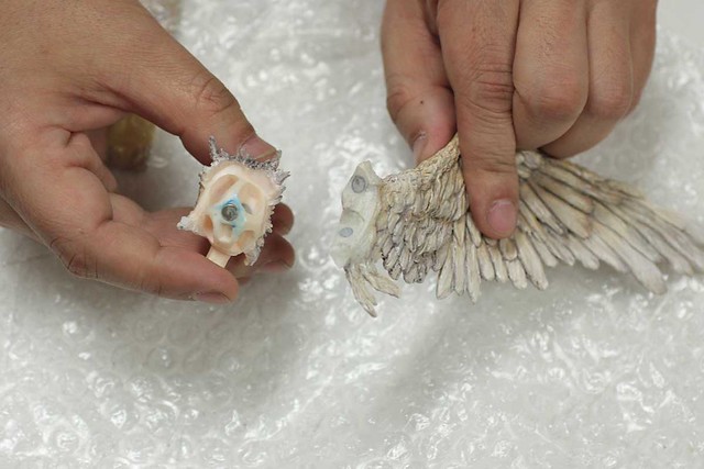 而將插畫忠實立體化的就是從高中起成為寺田克也的粉絲,GILLGILL的原型師「塚田貴士」。結合過去製作「寺田克也 封面女郎」原型的經驗,塚田貴士能從插畫中充分讀取出寺田克也所表達的意象,並透過出色的造型力將其表現,即便在製作「寺田克也版 妖鳥死麗濡」之前身處失去自信的迷惘時期,塚田貴士依然投注了滿滿熱情製作,最終作品獲得了超乎想像的好評。