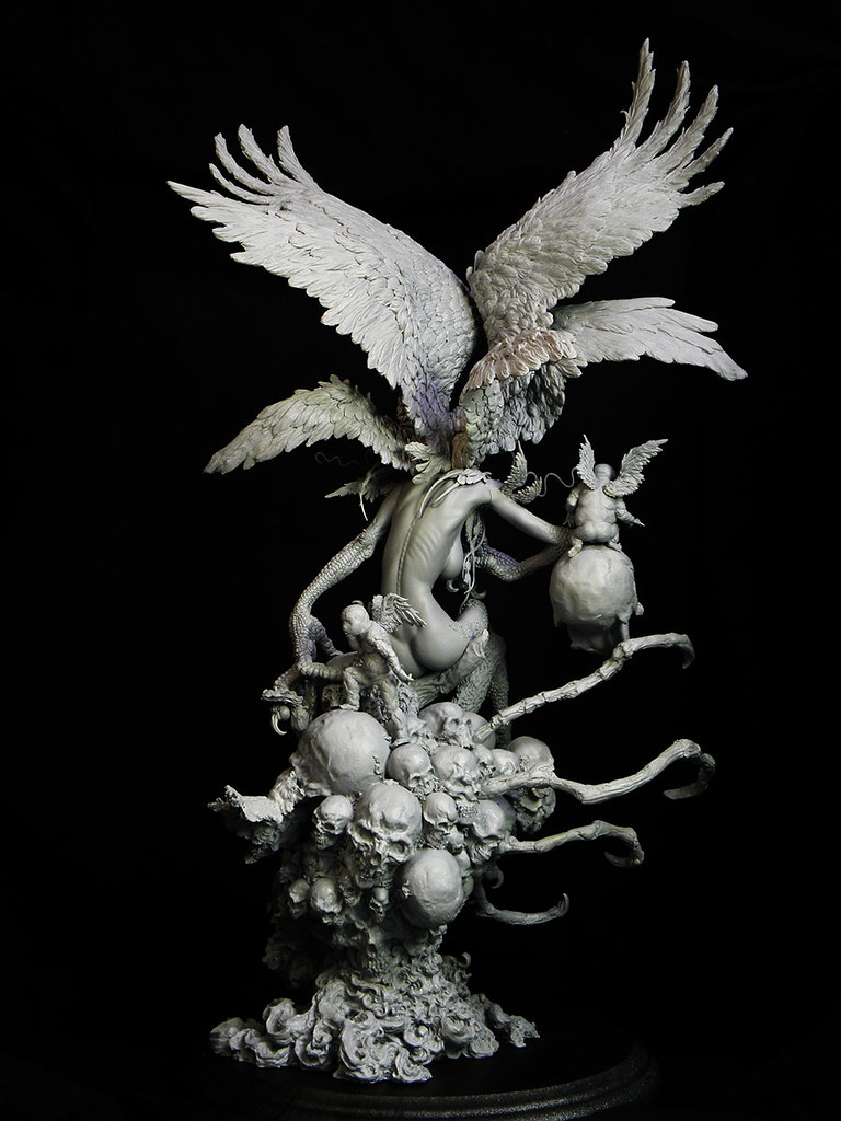商品化的寺田克也版 妖鳥死麗濡」採用能大量保留細節表現的 Resin casting 成形製作,羽翼的躍動造型和羽毛細節、死麗濡性感的身材和骨骼紋路,底座的惡魔與骷髏粗糙質感,全都保留了原型令人驚豔的細節。由於作品尺寸相當巨大(全高約 43 公分)且結構複雜,各個部位將採用強力磁鐵連接固定。