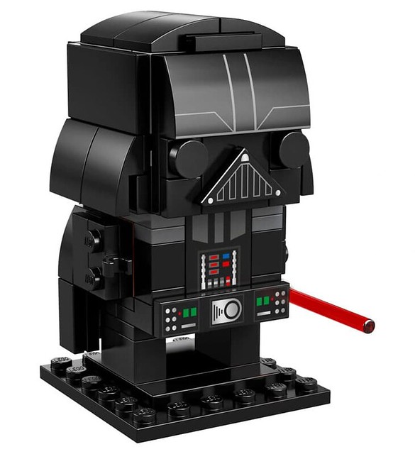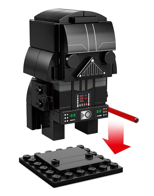 為了形塑出頭盔造型,這次的黑武士大頭人偶在頂部、側邊用上多個弧形磚來修飾頭型,同時又保有BrickHeadz 系列一貫的特色,在額頭、嘴部過濾器的部分使用特殊零件呈現,兩個黑黑圓圓的眼睛加上三角形的過濾器實在很可愛啊!胸前的儀表板、腰帶等裝備細節十分精緻,斗篷的形狀也做了出來,還有個趣味的設計是除了拿光劍的左手外,右手是呈現彷彿在使用「原力」掐住你喉嚨的姿態!就算Q 版化,黑武士還是很囂張啊~