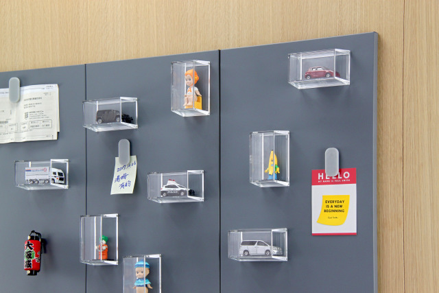 開頭介紹變道出這項產品的特點,而除了可以吸附生活中有既有的金屬面材,他們也推出了不同的組合搭配,像是與金屬佈告欄的組合,一片可吸附30個「魔吸盒」,能整齊有條理的掛在牆面上,是一種相當美觀的展示收藏方式,同時也善用了以往忽略的垂直收納空間,你說是不是相當實用又新奇的產品呢?