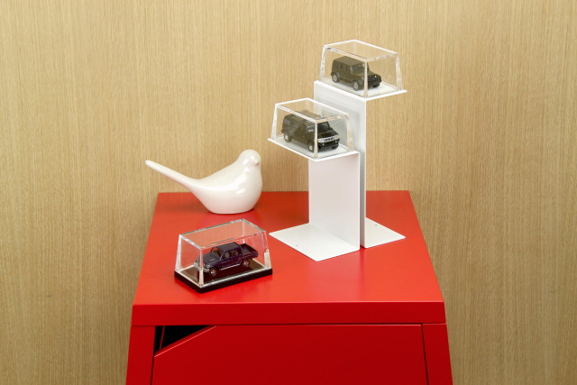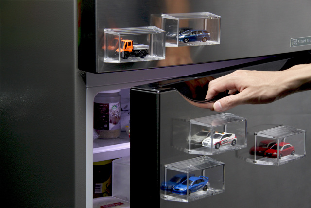 「收放設計」(SO+FUN design studio)在2017年所推出的「魔吸盒系列」是磁吸式的模型小物收納盒。磁吸式的功能,配上俐落的線條與高透明度的外型,能吸附任何磁鐵能吸附的金屬材質,隨處都是小小展示間的可能。