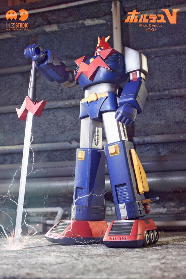 [超電磁マシーン ボルテスV]是由五機合體的巨大機械人, 當年推出的玩具中, 以超合金最為人津津樂道, 能五機合體, 原創的戰車形態及多姿多采的配件等等, 當年俘虜了不少少年(包括筆者)的心, 近年超合金魂亦有重新設計推出(GX-31 / GX-31V)。