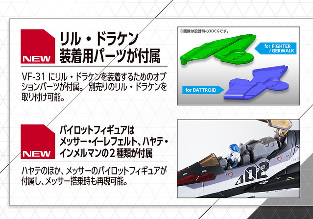 利刃・魔龍為另售商品,不包含於「DX超合金 VF-31F 齊格菲(梅薩/疾風 搭乘機)」商品中!