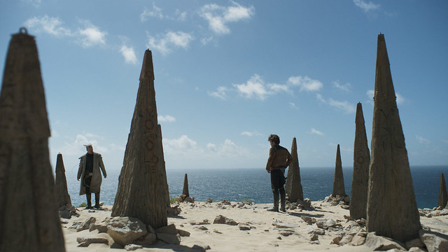 眾人提到奪取進行超空間旅行的Coaxium燃料時間久了會不穩定,必須中間找個星球將其穩定,其中有人提到要去史卡利夫星(Scarif),這提議馬上被貝克特打槍回絕,因為有看俠盜一號的就知道這顆星球軍事防禦非常強,隨意闖入的話一定馬上就被帝國軍摧毀。
