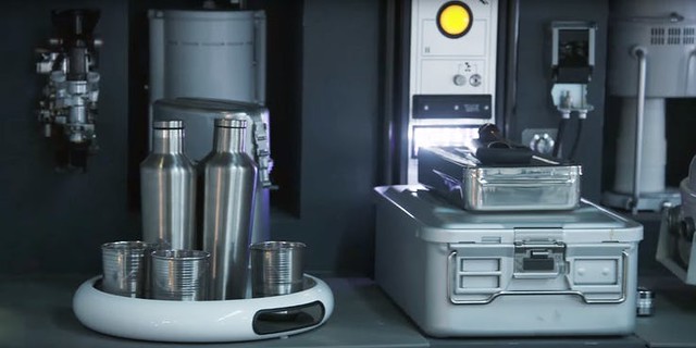 千年鷹號的咖啡機和杯子擺法,致敬了異形系列。這裡講一下,異形系列很多細節都被視為一個未來世界生活的典範,其中一個就是咖啡機和杯子的擺法其視覺風格,常被許多作品拿去借鏡參考。