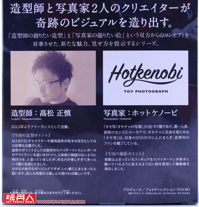 負責本次蜘蛛人作品的原型師「高松正慎」老師不但生動地詮釋出蜘蛛人軟Q 的飛躍姿態,更勾勒出活靈活現的肌肉線條;而這次的攝影師「Hotkenobi」是一名相當厲害的玩具攝影師,他的instagram 帳號「hot.kenobi」擁有12 多萬名粉絲,在愛拍玩具的小編心目中,他完全是如同大神一般的偶像啊~