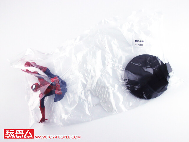 ▼內容物包含不需組裝的蜘蛛人、蜘蛛絲、有著「THWIP」字樣的透明支架,以及黑色底座。