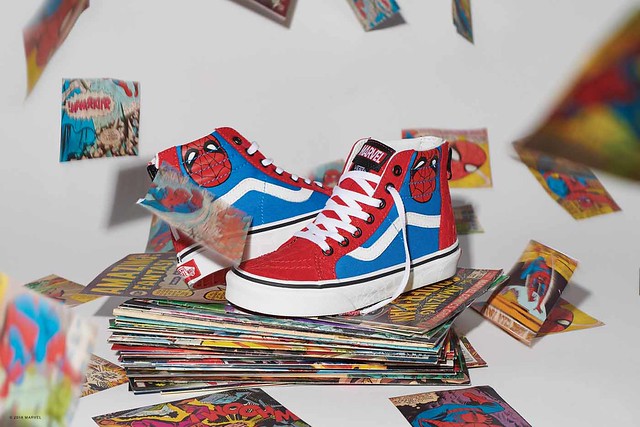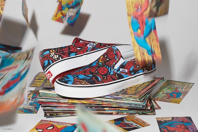 再來就輪到Vans 最經典的懶人鞋款啦~由於本身簡潔的設計,所以就算被塞入滿滿的蜘蛛人圖樣也沒有問題!數個蜘蛛人所堆疊出來的層次感真的很讚!跟蜘蛛人的玩具一起展示也是不錯的選擇。