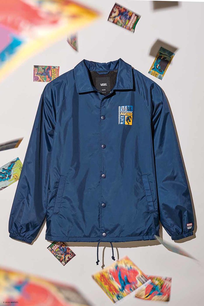 Vans 也公開了各類的服飾、襪子、背包、帽子供各位英雄迷挑選,快來看看這次有沒有你喜歡的英雄聯名商品吧!!像是可以讓蜘蛛人爬上小腿的襪子、猛毒的棒球帽、復古漫畫風格的拉繩包、藍底的黑豹防風外套都很帥氣啊~!