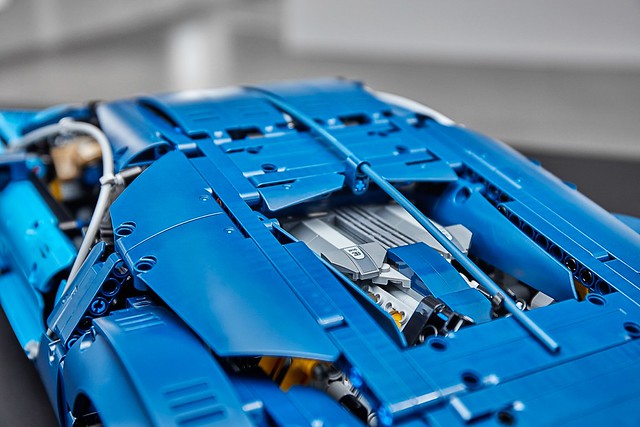 內構的部分完全展現出科技系列的特點,運用大量的零件堆砌出骨架並做出連動系統,讓這輛布加迪 Chiron 擁有許多可動的機關,例如可上升/下降的擾流版、可掀起的前蓋、可轉動的W16型引擎、懸吊系統、8段變速齒輪箱,而車內的方向盤、儀表板、淡褐色座椅也都細緻地重現,看了真的是口水直流啊!