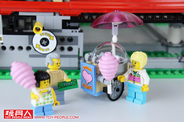 ▼再來就是遊樂園中不可或缺的小攤販!每一個的造型都小巧精緻,顏色也選用較為繽紛、粉嫩的搭配,就算單獨看也超棒啊!首先就是這個粉紅棉花糖推車,以新的蜂窩零件為底再做出一些小改造,就成了可口的棉花糖~