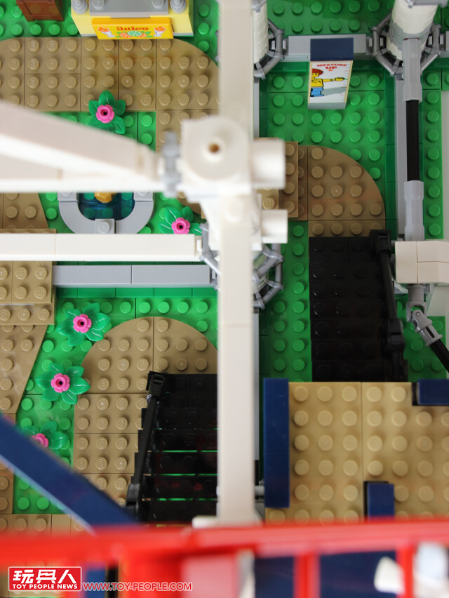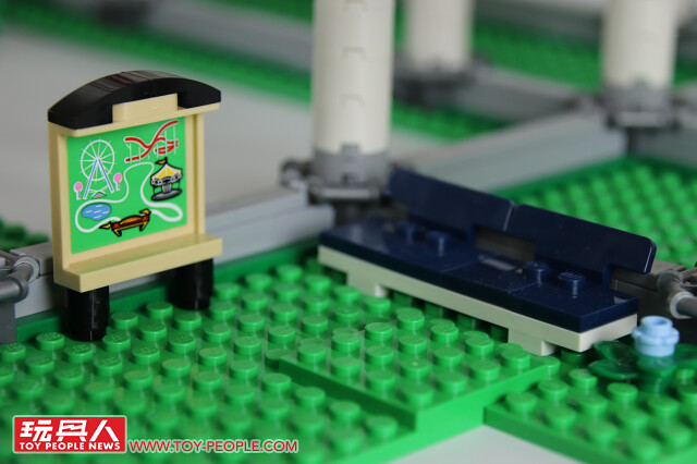▼在前往搭乘雲霄飛車月台的路途中還有像是小花園的結構,另外,還有量身高的柱子、遊樂園地圖、長椅等細節。