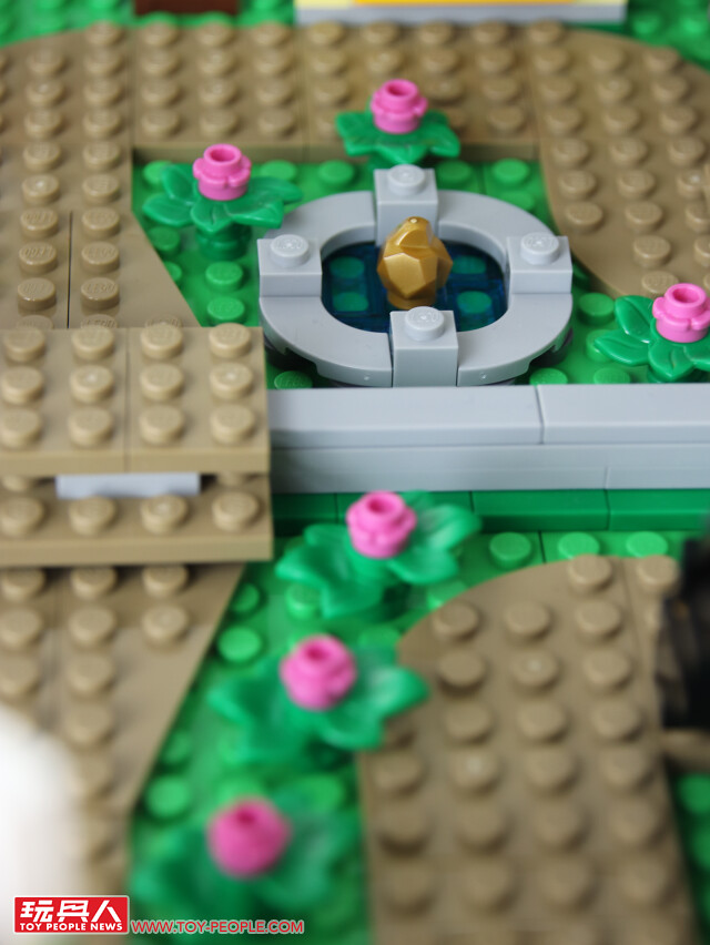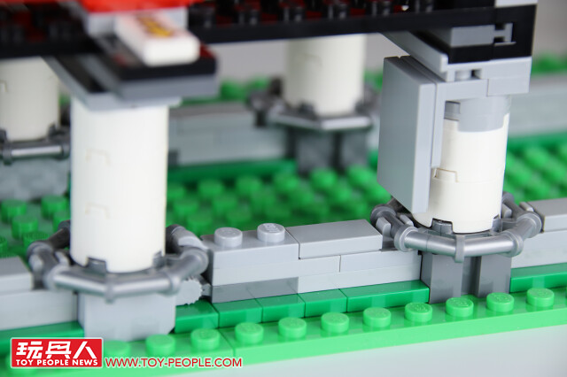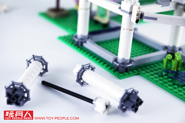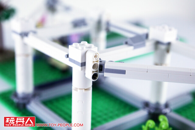 ▼為了穩固這麼大的建築,當然必須在結構的設計上塞入更多巧思,像是柱子除了接合面之外,外圈再做出緊扣的設計,而2x2 的圓柱體零件裡頭也塞入長條狀的十字零件,在不影響外觀的情況下又能加固。