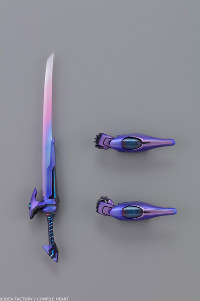 「次世代紫靈心 處理器組件 全武裝Ver. 1/7 比例模型」全高約 380mm,巨大的尺寸帶來非凡的氣勢。本體與裝甲組件採可分離設計,飛舞的頭髮使用透明零件製成,表現出自然的光影變化。緊身衣的細節豐富,線條以金屬藍塗裝更具高級質感,身材曲線也十分美麗,腹部與背部的鏤空部位更有精緻的肌肉線條。這次的版本更追加「劍」、「手甲」等零件,再現完整的「次世代型態」!
