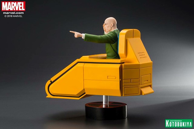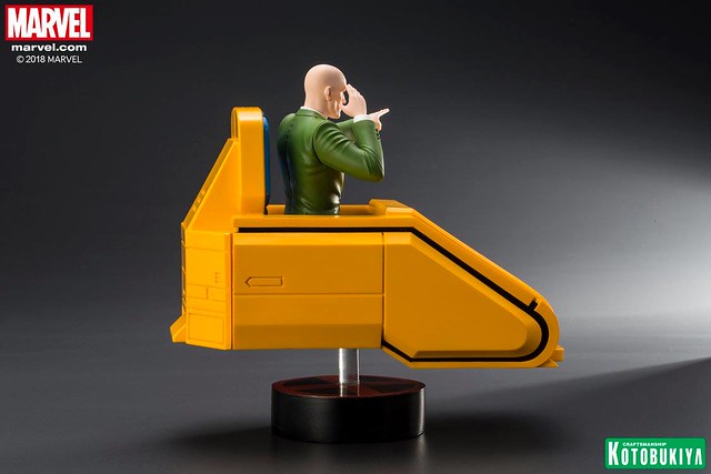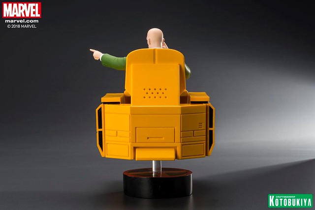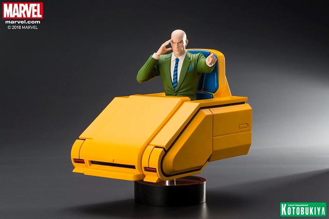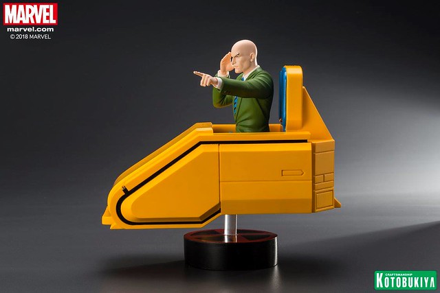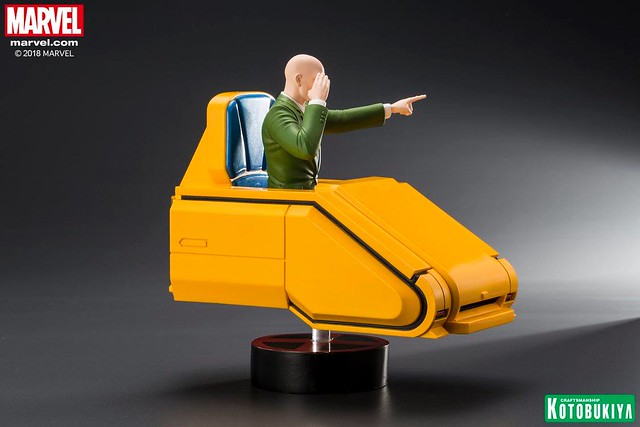「ARTFX+ X 教授」全高約20 公分,以高水準的製作技術將正在施展心靈感應的教授立體化,逼真還原了動畫中的臉部輪廓,墨綠色西裝和黑、藍條紋的領帶,以及充滿未來科技感的黃色懸浮椅也完整再現,使用透明支架營造出漂浮的視覺效果,底座則是X 戰警的標誌,真的非常經典,滿滿的童年回憶!