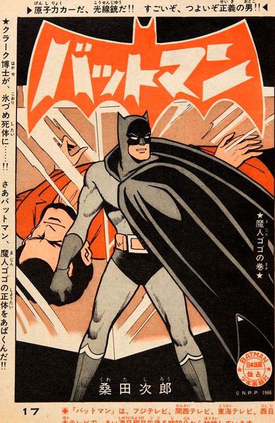 在1966年開播、由「亞當·韋斯特(Adam West)」主演的蝙蝠俠經典電視影集不只在歐美地區造成轟動,在日本地區播出後也掀起一股熱潮,於是當年的「少年画報社」就跟DC 漫畫取得蝙蝠俠版權,讓日本漫畫家可以創作出自主風格的故事。其中桑田次郎所繪製的《BAT-MANGA》相當經典,大致上是蝙蝠俠和搭擋羅賓對抗邪惡組織和各種怪人的漫畫故事。