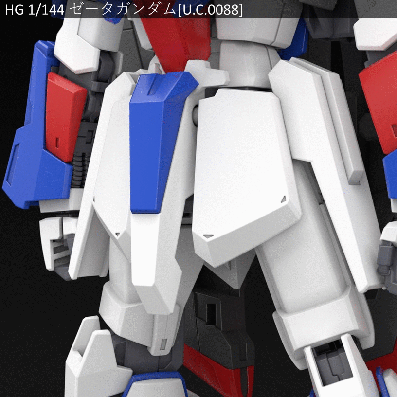 「HG 1/144 Z鋼彈[U.C.0088]」以先前具備高度可動性的「新版 Z 鋼彈」套件修改而來,重現《Z》後期~《ZZ》前期登場的後期型造型細節,在頭部、身體、腕部、裙甲腿甲、飛行裝甲等多處都採用新規零件製作,同時也更為加強套件的分件,特別是前作中令人在意的飛行裝甲紅色部份也重新製作,在未塗裝的情況下就能大幅還原劇中色彩!