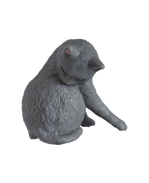 而在野生貓科動物在捕食動物的時候,前肢跟臉部也都會沾滿獵物的血,所以吃完飯後都一定會進行舔舔手來再舔舔臉的動作等等,此次以貓咪經常會舔著自己身上的貓毛來整理的模樣在現,身為貓奴的玩具人當然要轉一下這款這麼療癒的作品啊!